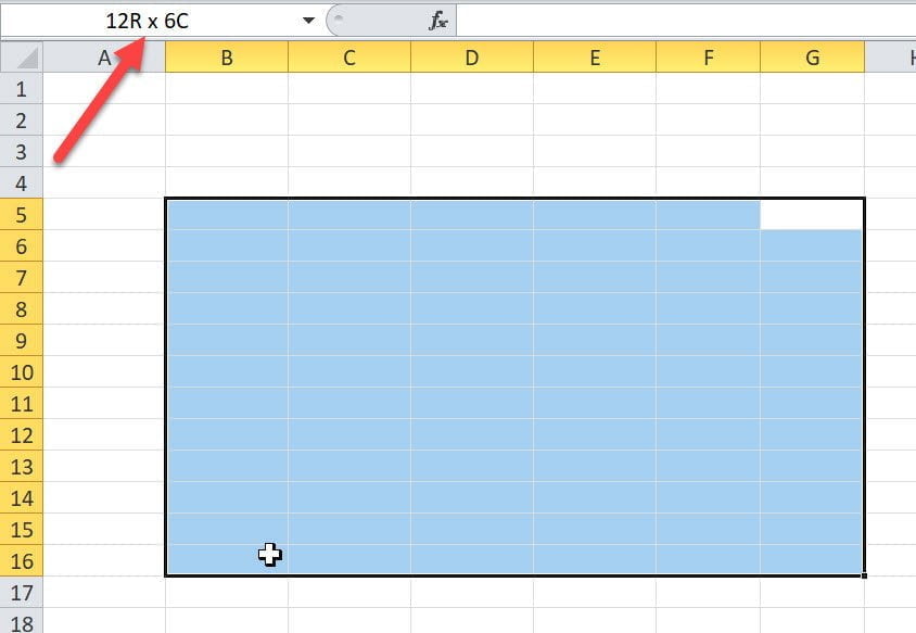 Once the selection is completed, the name box will display the first cell address in that selected range.
